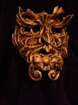 I experimented with pressing paper pulp mixed with Plaster of Paris into latex molds I made from vine & leaf shapes on an old piece of molding. I could make as many of these shapes as I wanted and once I had a sufficient quantity was able to build a Renaissance styled Green Man on a plaster bandage base. I have since learned that while the plaster adds strength the pieces are still brittle and break easily. I now add Sculpt-or-Coat to the paper pulp & plaster mixture to give it greater strength and flexibility.